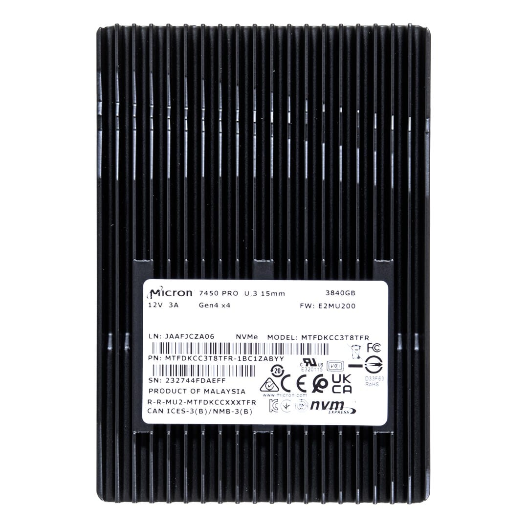SSD Micron 7450 PRO 3.84TB U.3 (15mm) NVMe PCI 4.0 MTFDKCC3T8TFR-1BC1ZABYYR (DWPD 1) – kompakt, zuverlässig und bereit für tägliche Aufgaben.