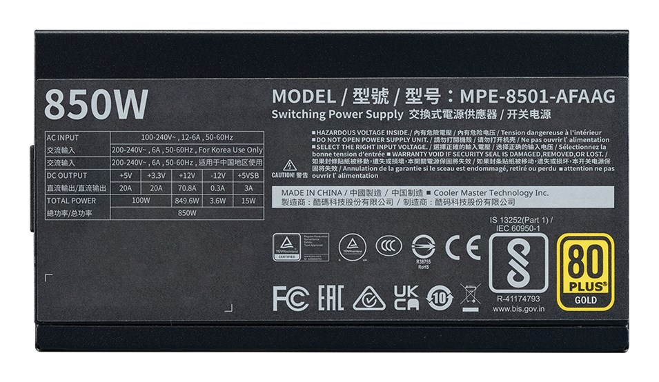 Cooler Master MWE Gold 850 V2 ATX 3.1 power supply unit 850 W 24-pin ATX Black — compact, reliable and ready for everyday tasks.